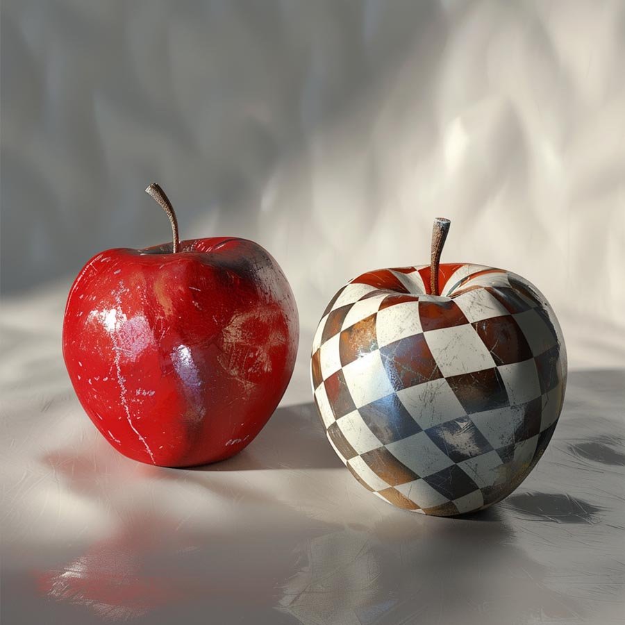 Ich kann Ihnen heute ein Kunstwerk vorstellen, das die Essenz der visuellen Kunst in einer Weise einfängt, die sowohl innovativ als auch tiefgründig ist. „Zwei Äpfel. Einer rot und einer karriert.“ ist ein Titel, der die Neugier weckt und die Fantasie anregt. Dieses Werk ist eine meisterhafte Darstellung in 3D-Kunst, die die Grenzen zwischen Realität und Illusion verschwimmen lässt.