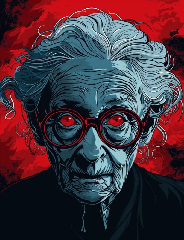 Alte Frau im Anime-Stil nach Junji Ito - Sehr geehrte Damen und Herren, es ist mir eine große Freude, heute Abend hier zu sein und dieses einzigartige Kunstwerk zu präsentieren. Der Titel des Bildes ist “Alte Frau im… ...