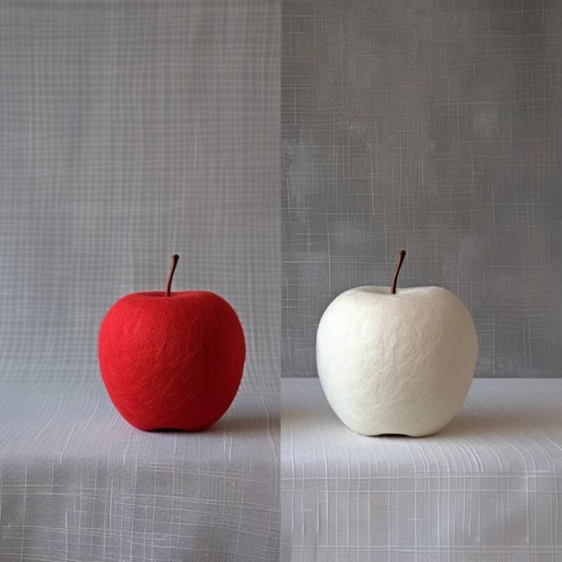 Zwei Äpfel. Einer rot und einer karriert. - Ich kann Ihnen heute ein Kunstwerk vorstellen, das die Essenz der visuellen Kunst in einer Weise einfängt, die sowohl innovativ als auch tiefgründig ist. "Zwei Äpfel. Einer rot und einer… ...