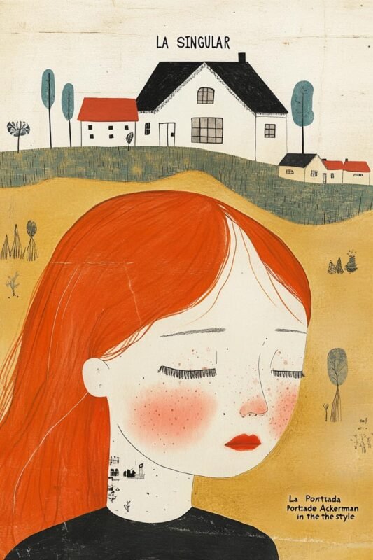 Digitale Melancholie - Sie sehen einen sehr einzigartigen, fast surrealistischen Stil mit einer Mischung aus Illustration und grafischer Kunst. Das Bild zeigt ein Mädchen mit roten Haaren und grünen Augen, das in einem… ...