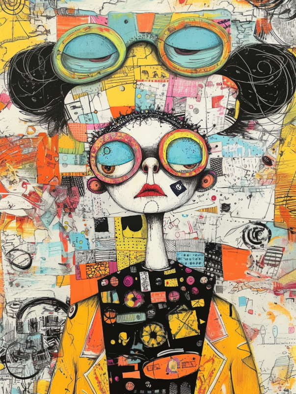 Abstraktes verzerrtes Porträt einer Frau in Nahaufnahme im Stil von Klee - Sehr geehrte Damen und Herren, ich freue mich sehr, heute Abend hier zu sein und die Ehre zu haben, dieses bemerkenswerte Kunstwerk zu präsentieren. Der Titel des Bildes ist “Abstraktes… ...