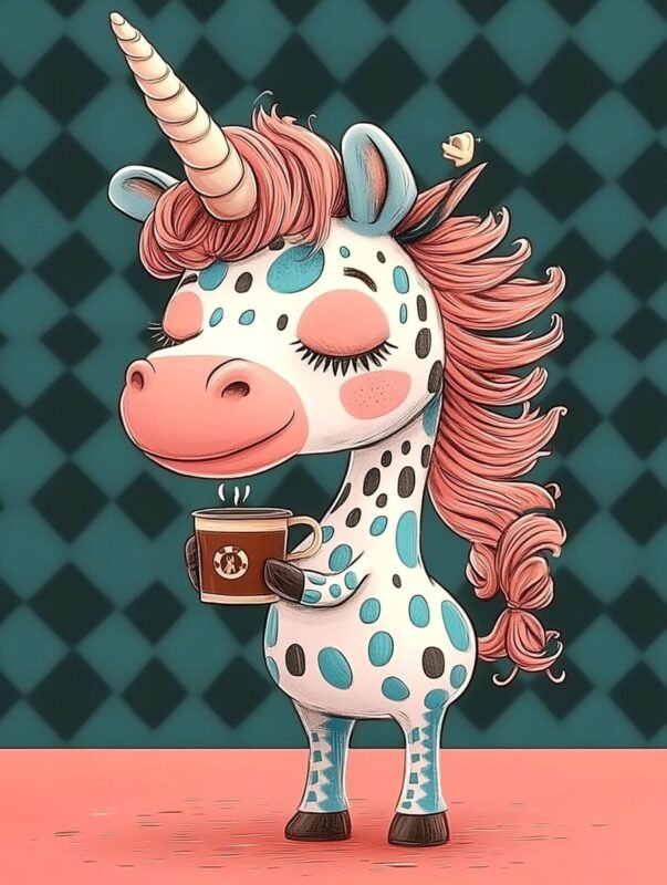 Einhörner & Espresso: Mehr als nur Fabelwesen am Morgen - Cornelia, ein entzückendes Einhorn mit blau-rosa Tupfen und einer flauschigen rosa Mähne, öffnet langsam ein Auge. Der Duft von frisch gebrühtem Kaffee kitzelt ihre Nase. Mit einem zufriedenen Lächeln und… ...
