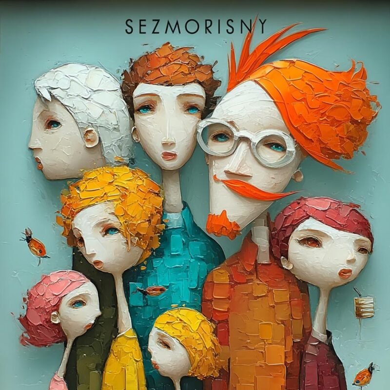Gruppenporträt „SEZMORISNY“ - Es ist wieder Zeit für das jährliche Familienfoto der Sezmorisnys, und wie immer ist es ein charmantes Chaos. Papa Sezmorisny, der mit der feuerroten Tolle und der runden Brille, versucht… ...