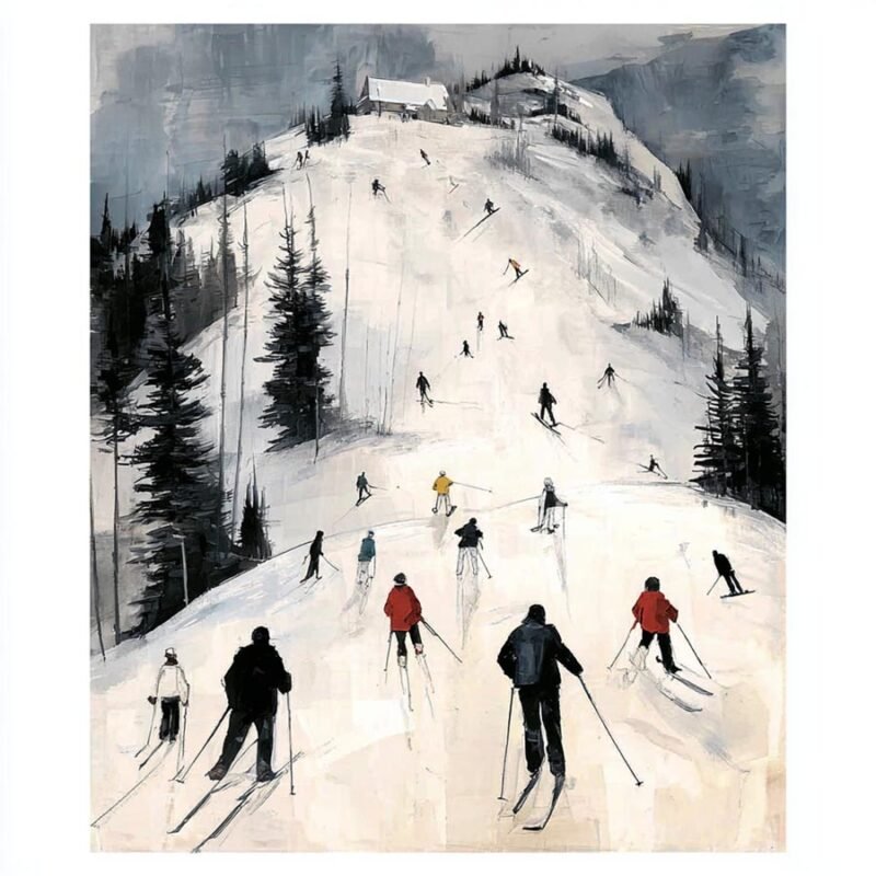 So viele Menschen am Berg - Aus der Ferne wirken die Skifahrer wie eine anonyme Masse, ein Schwarm. Man könnte das Bild als Kommentar zum Massentourismus und der Art und Weise sehen, wie der Mensch die… ...
