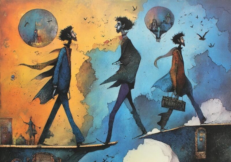 Drei blaue Männer mit roten Hosen - Einführung in das Kunstwerk Herzlich willkommen zu dieser besonderen Vernissage. Heute möchte ich Ihnen ein außergewöhnliches Bild vorstellen: 'Drei blaue Männer mit roten Hosen'. Diese Kreation, die im faszinierenden Stil… ...