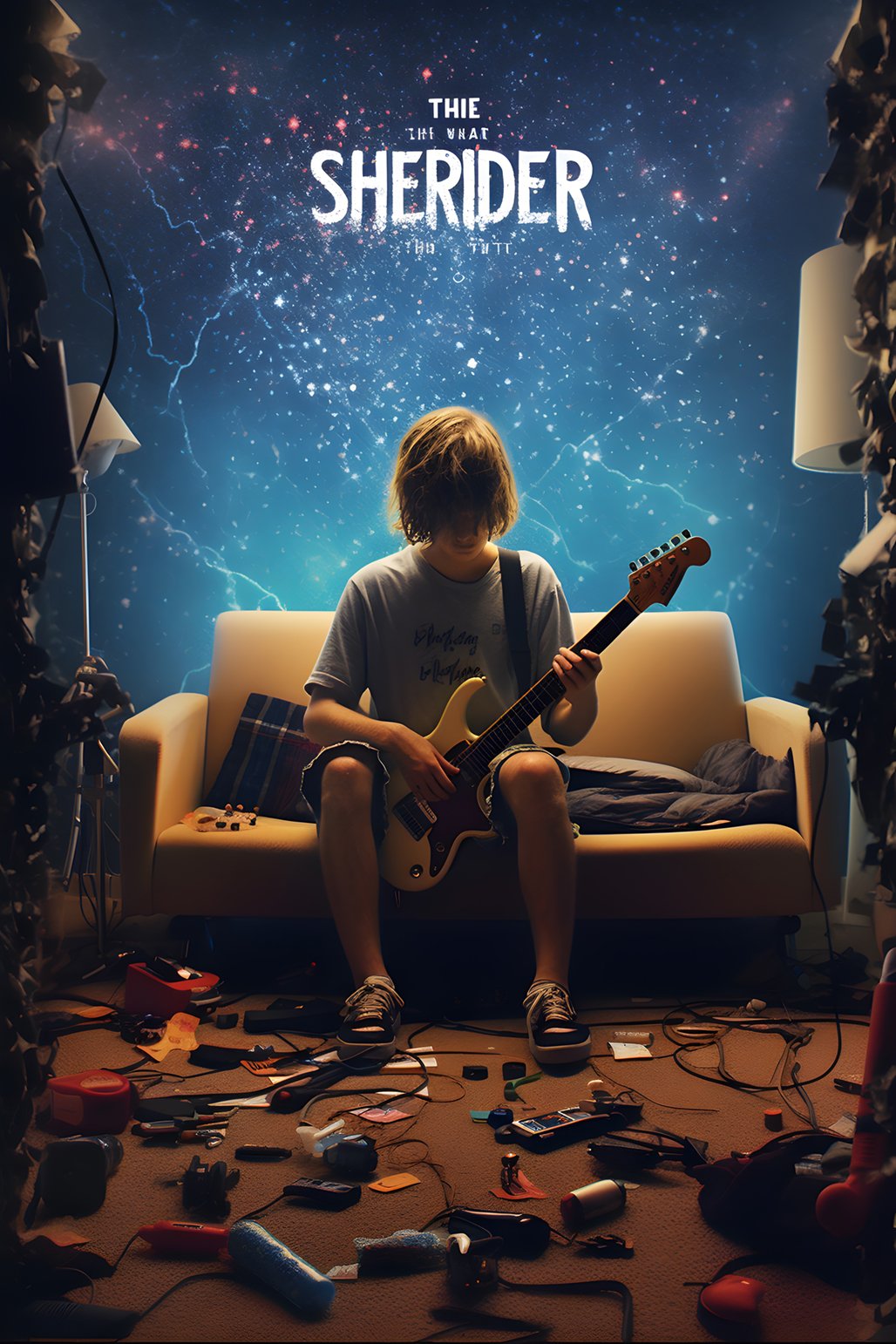 an 18 year old, disheveled, sad, skater, sitting on the edge of his messy bed, playing guitar 2