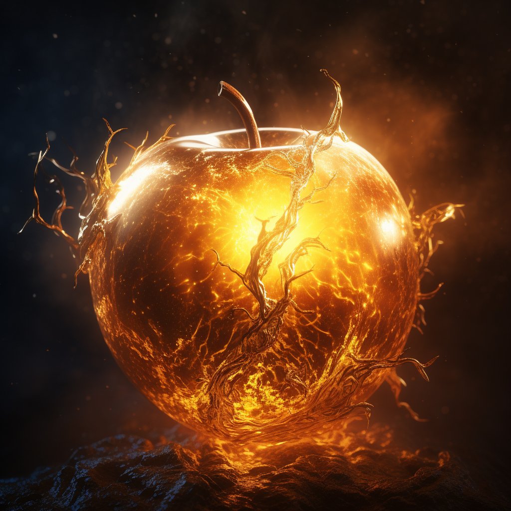Ein goldener Apfel mit einer glatten, glaenzenden Oberflaeche ist sehr attraktiv 4