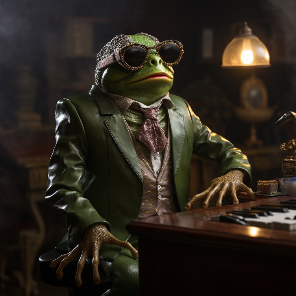 Elton John als Frosch mit Sonnenbrille und Klavier 2