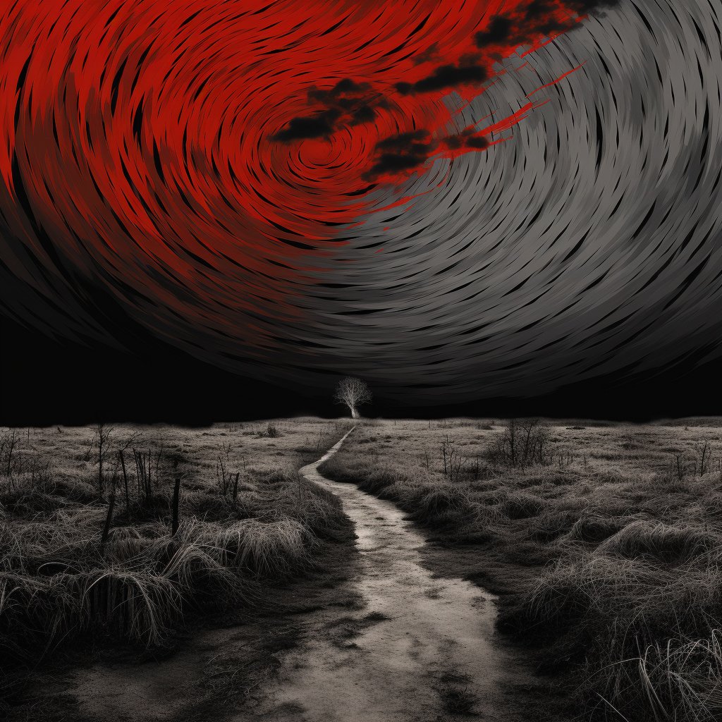 Feld mit Weg, massive wirbelnde Wolken 2