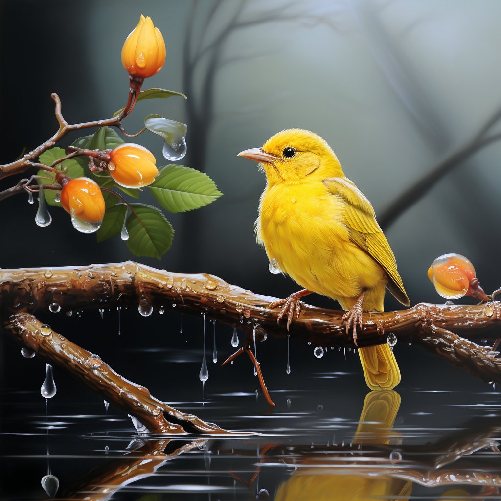 gelber vogel auf einem ast im wasser 2