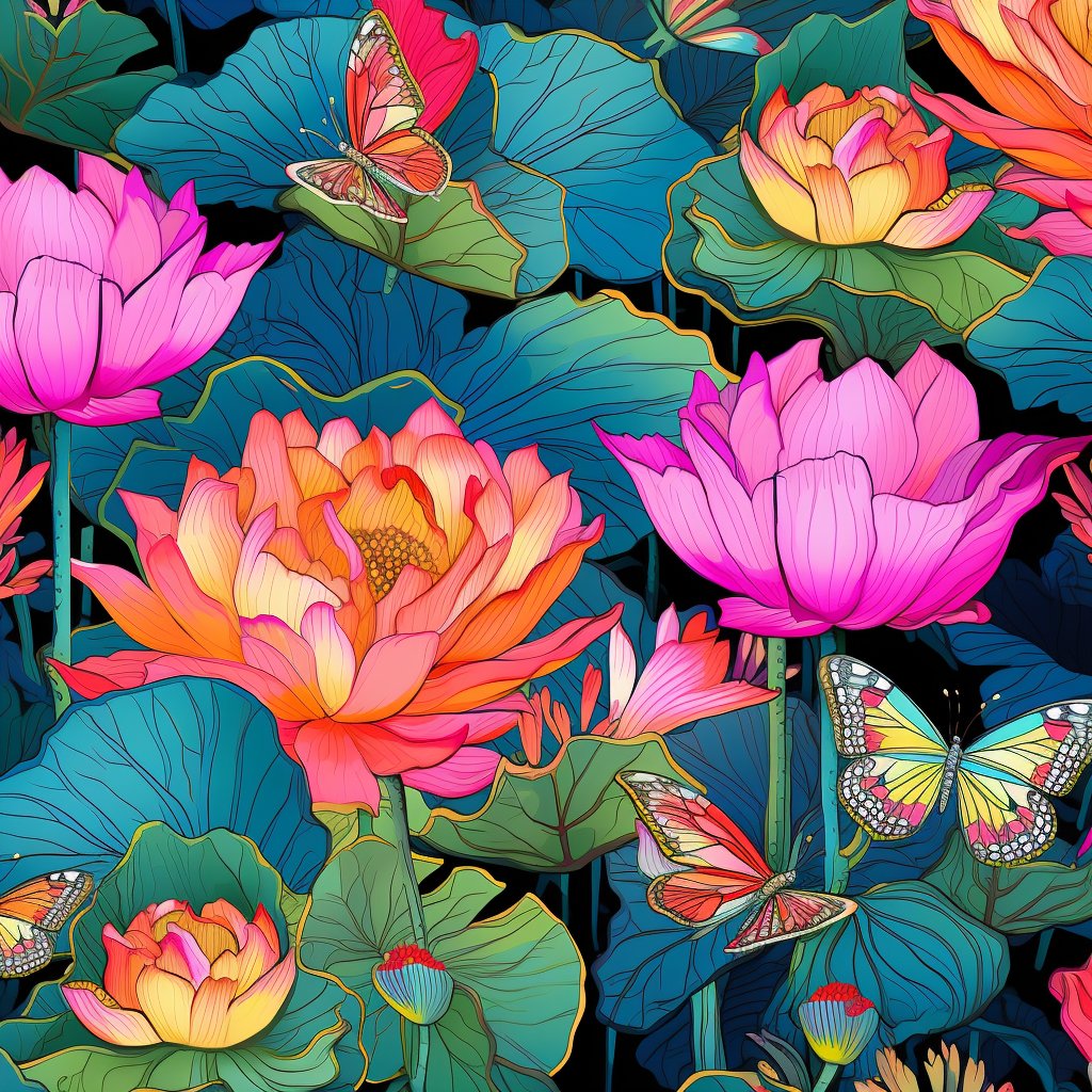 nahtlose Muster von Lotusblumen und Schmetterlinge 3
