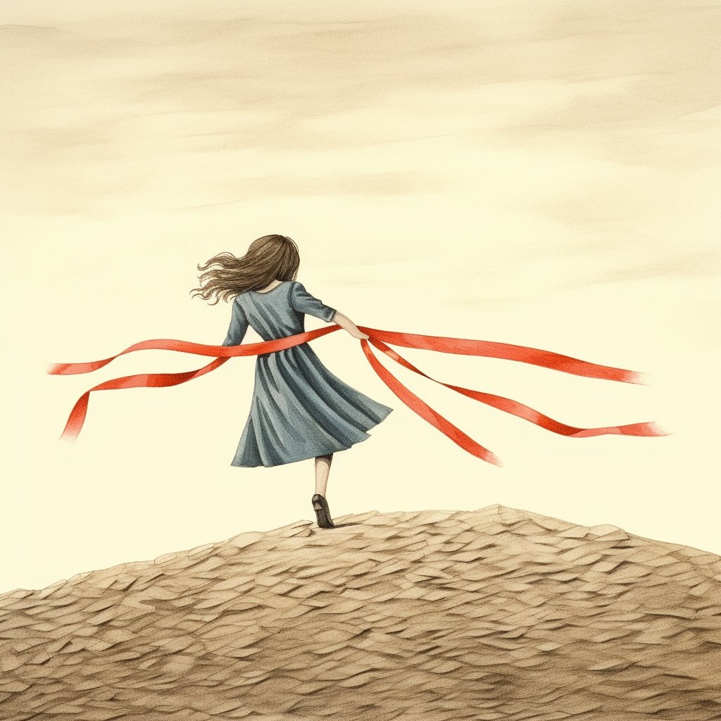 naive drawing of a girl with a ribbon dancing 2