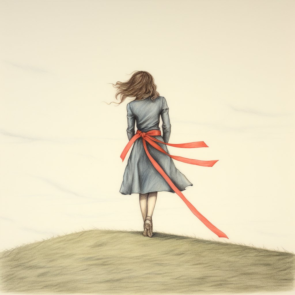 naive drawing of a girl with a ribbon dancing 3