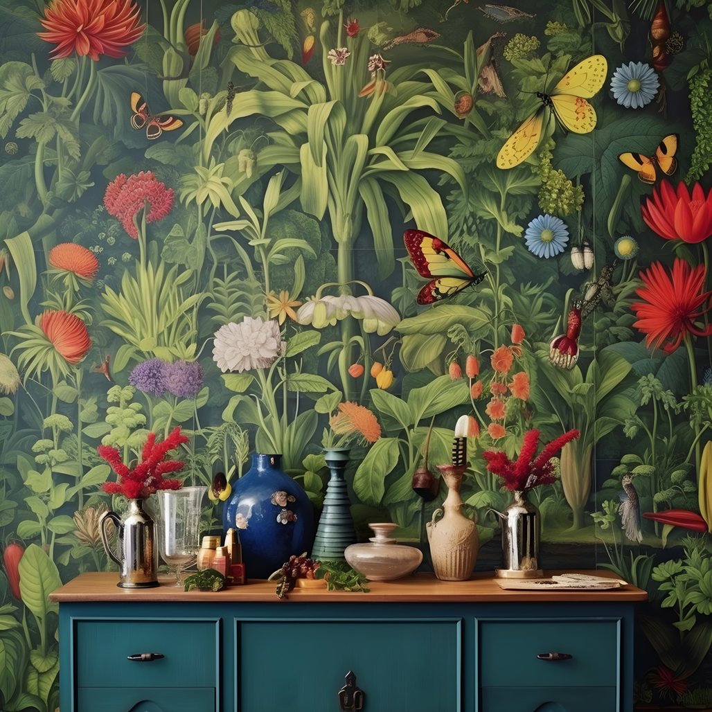 stunning botanical wallpaper depicting plants and insects such as caterpillars, moths, dragonflies, beetles or bees. 1
