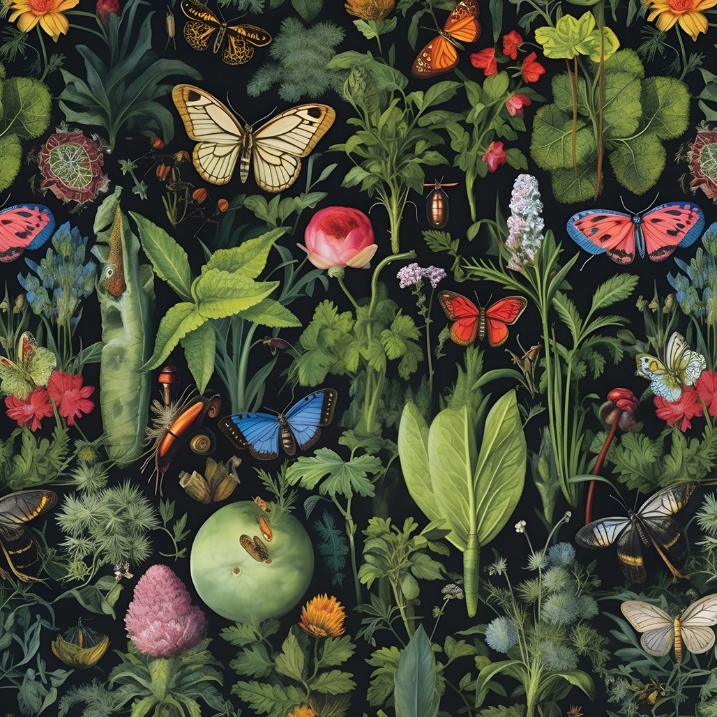 stunning botanical wallpaper depicting plants and insects such as caterpillars, moths, dragonflies, beetles or bees. 2