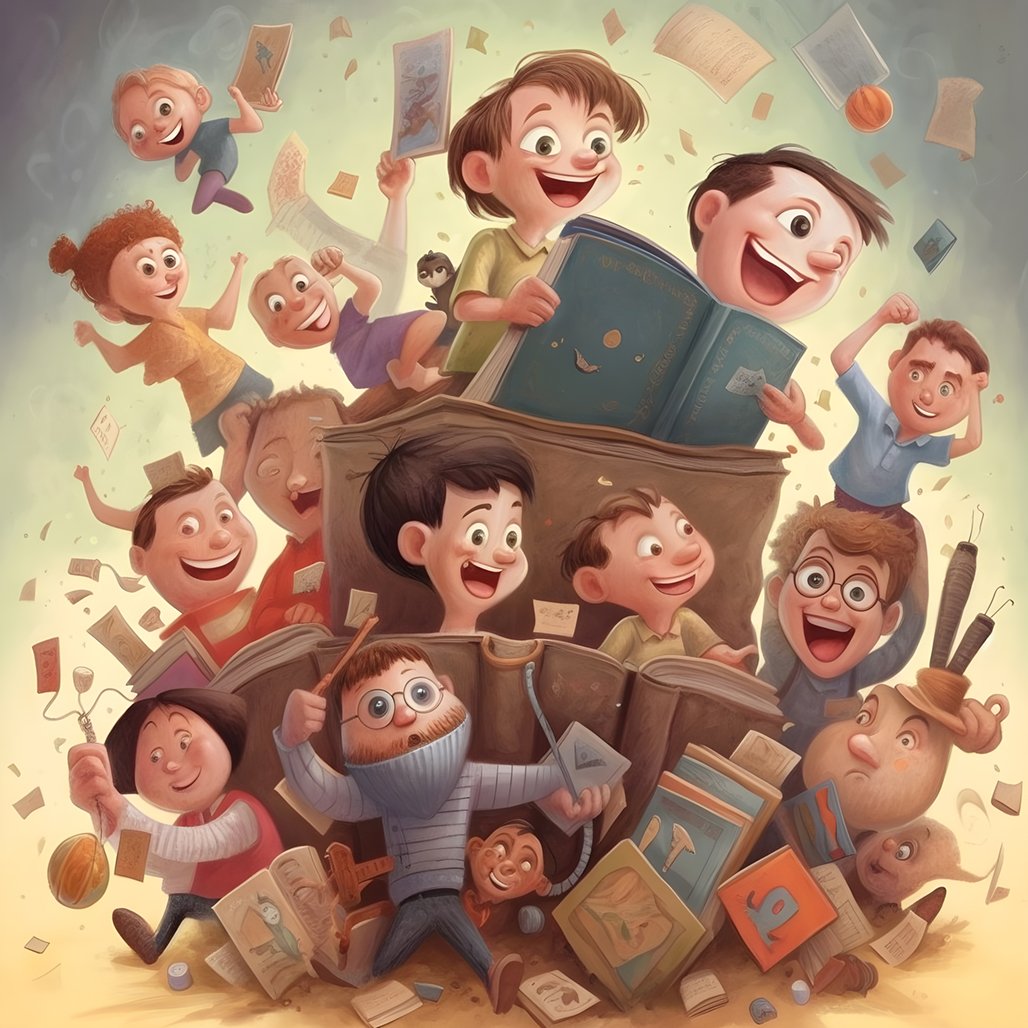 A delightful illustration that captures the joy and fun of people playing with words. 3