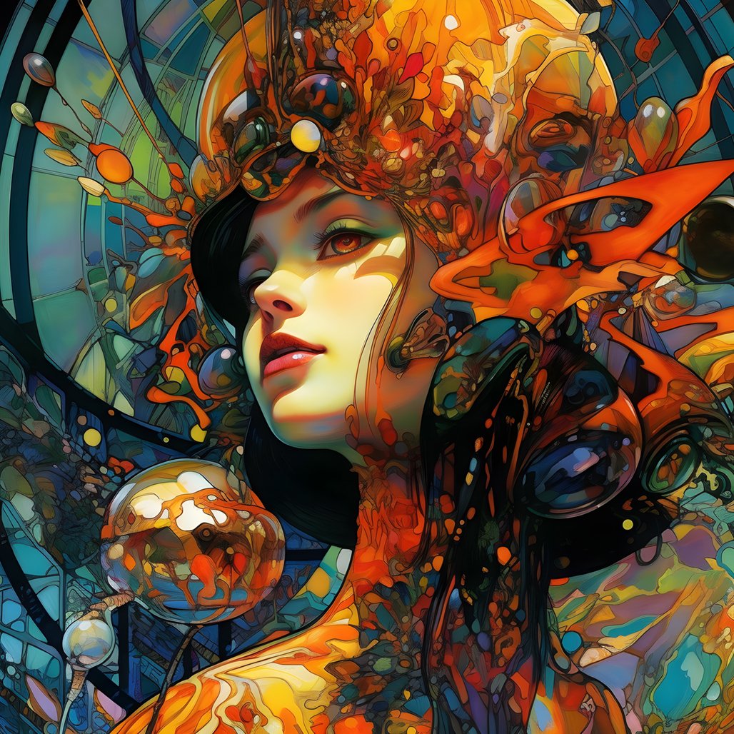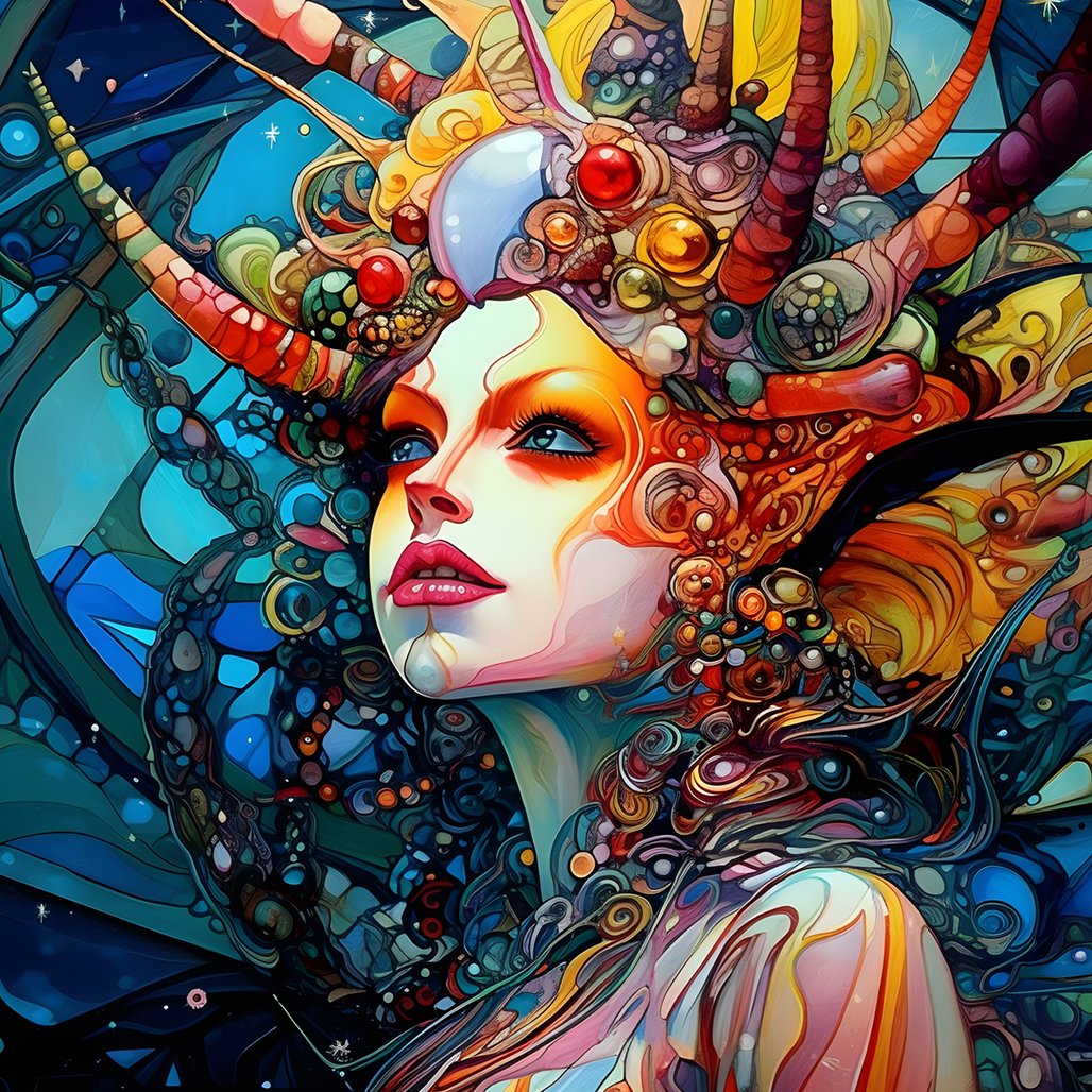 closeup extremely loveable gorgeous beautiful adorable charming whimsical flamboyant mischievous beautiful psychedelic carnival Cajun swamp mutant sci-fi fembot 4