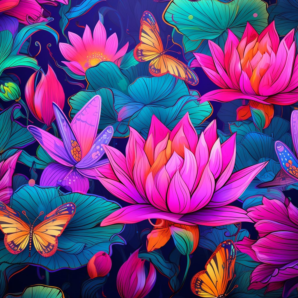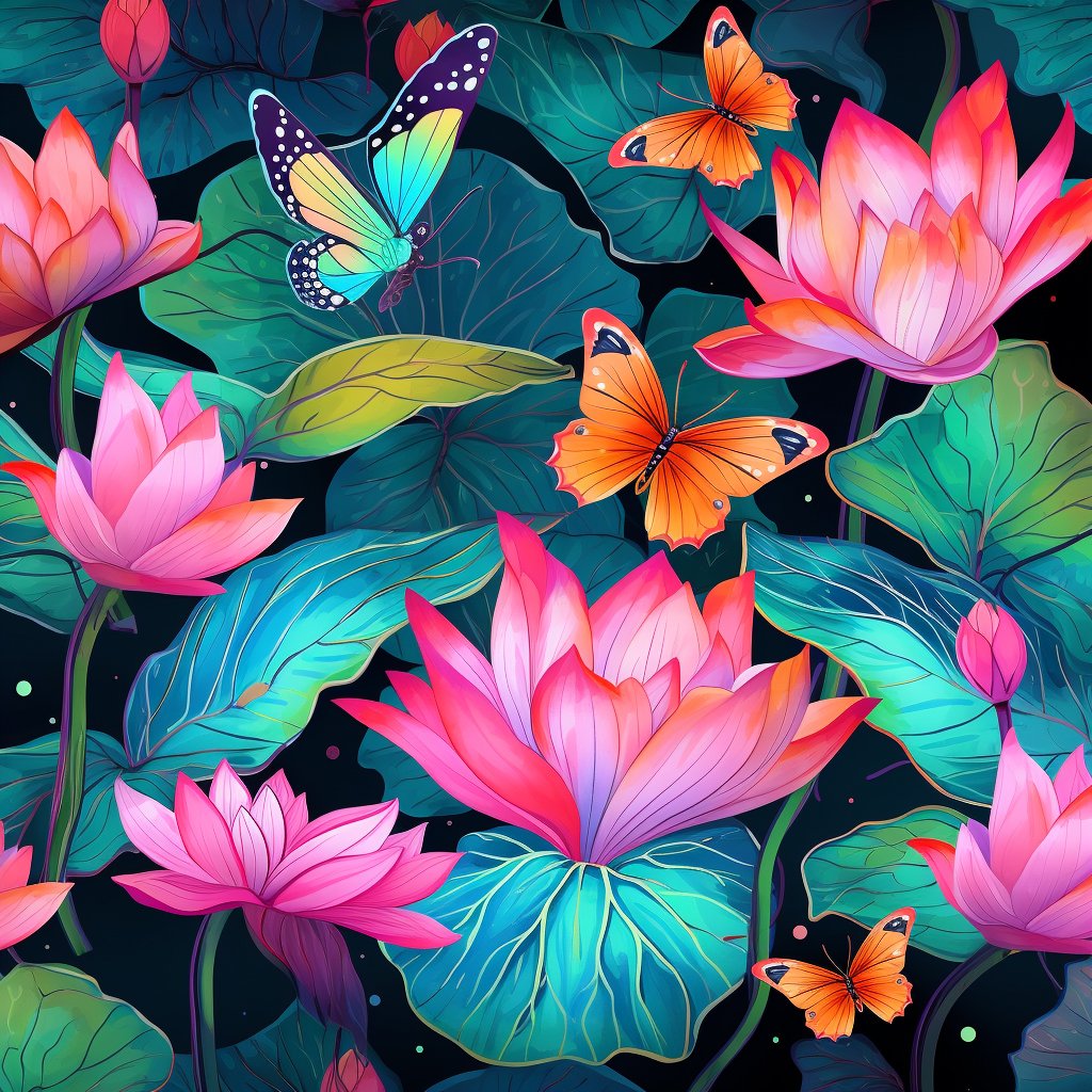 nahtlose Muster von Lotusblumen und Schmetterlinge 4