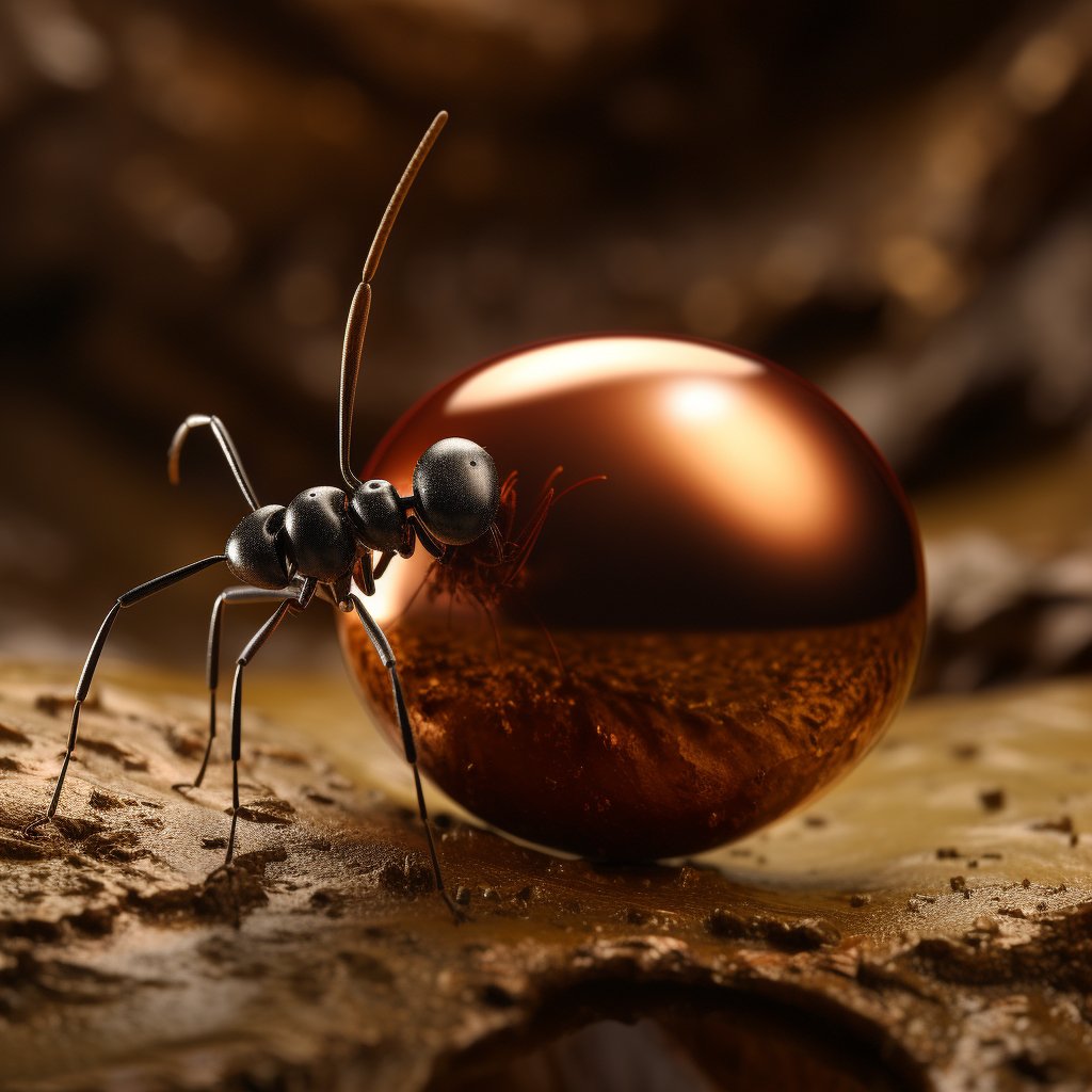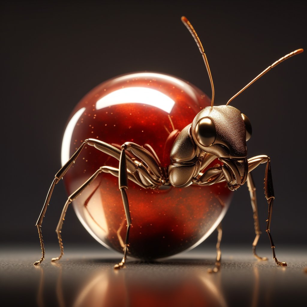 Eine braune Ameise klettert auf einen riesigen Apfel 2
