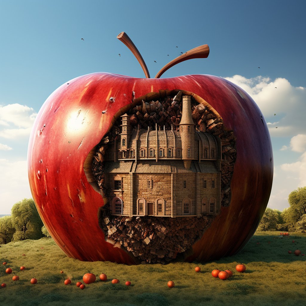riesiger Apfel auf einem Feld mit vielen kleinen Fenstern 3
