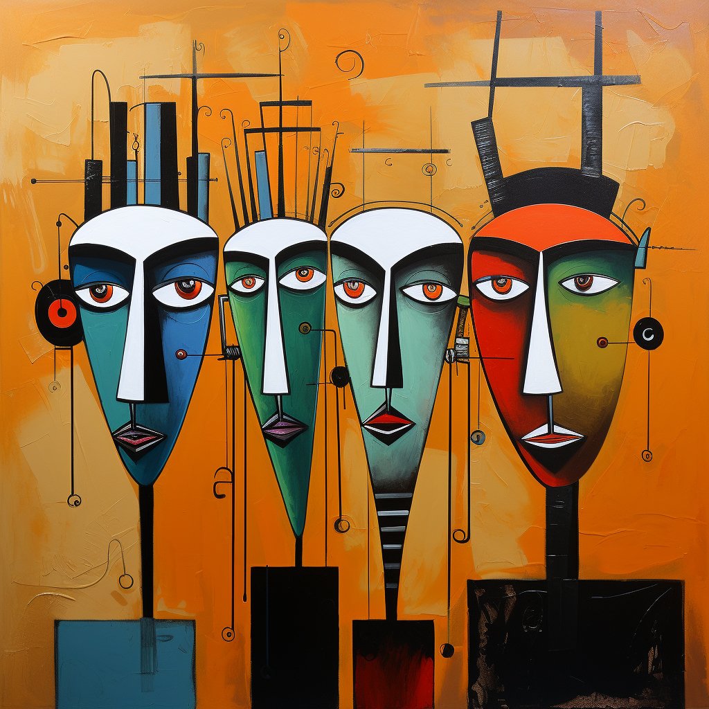 ein gemaelde zeigt eine gruppe von vier koepfen an einer wand 4