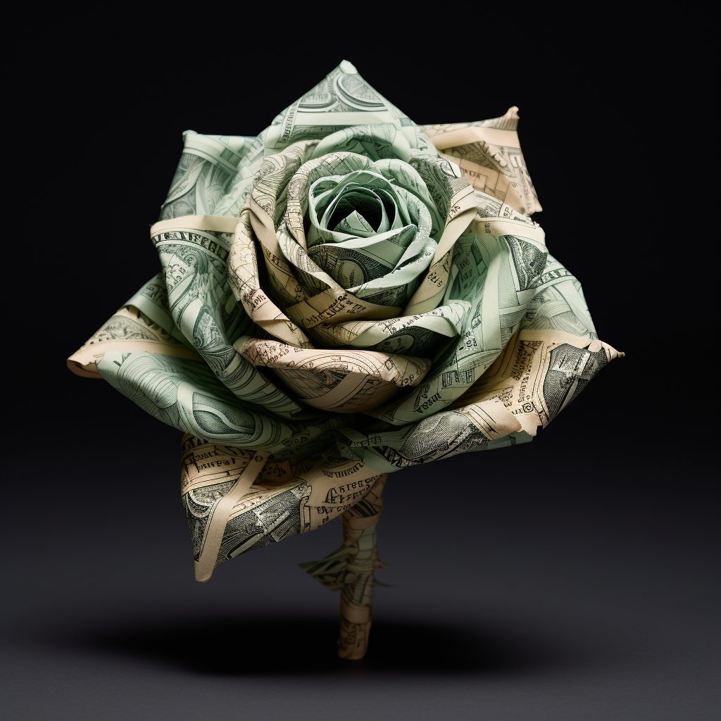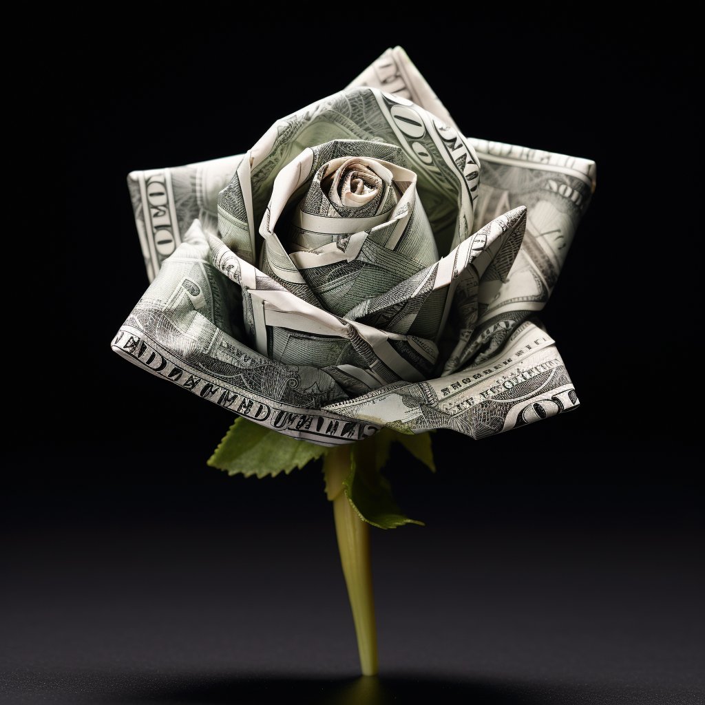 eine Rose aus 100 Dollarscheinen, die elektrisch sind 2