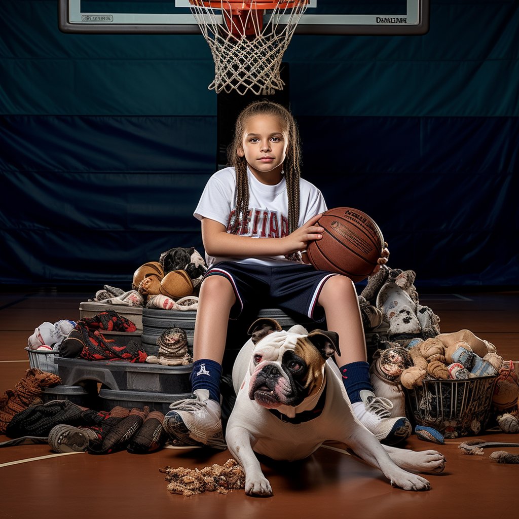 ein 10-jähriges Mädchen sitzt wartend mit ihrem Hund am Boden halten einen Ordner mit dem Bild 4