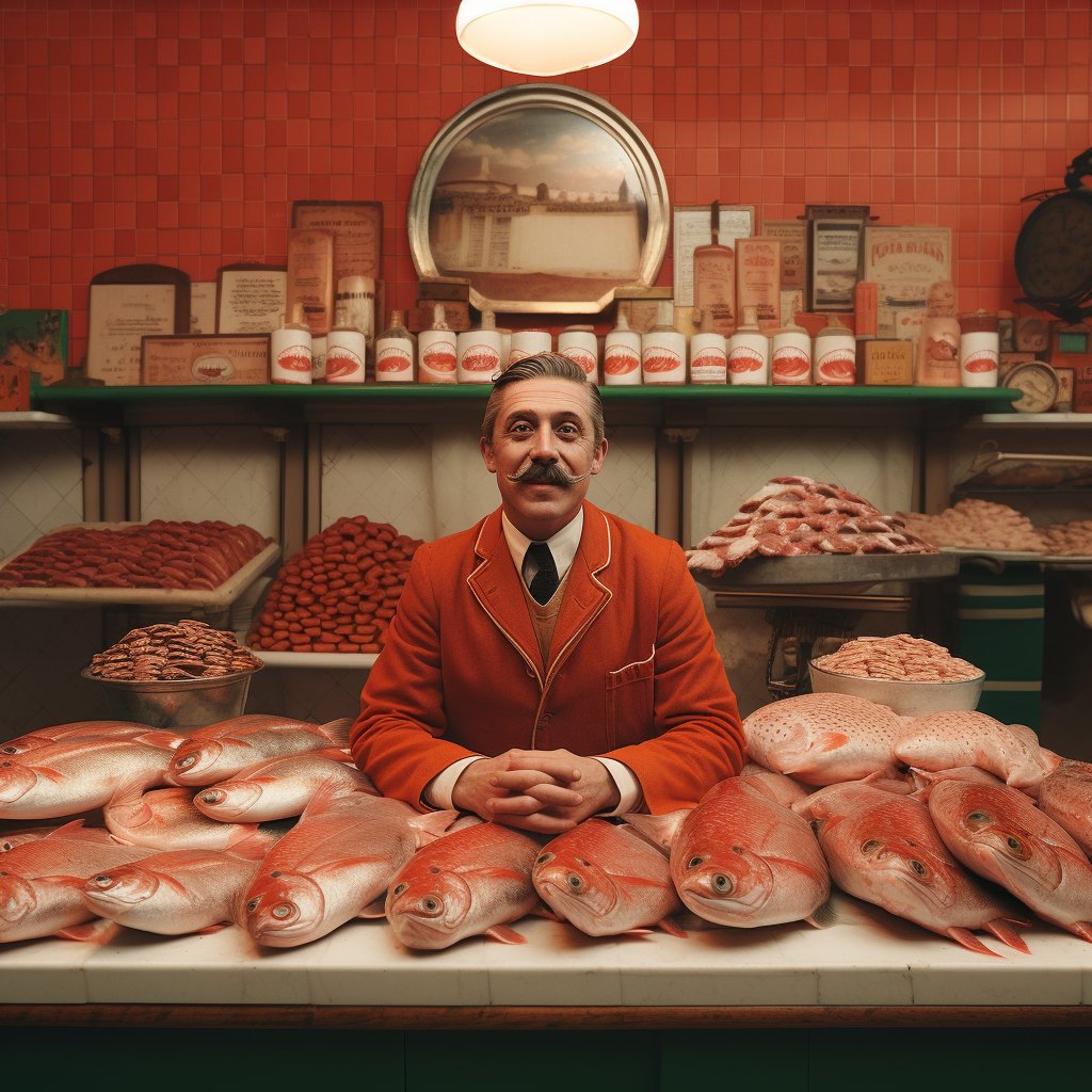 ein surreales Bild eines polnischen Fischhändlers aus den 1950er Jahren 2