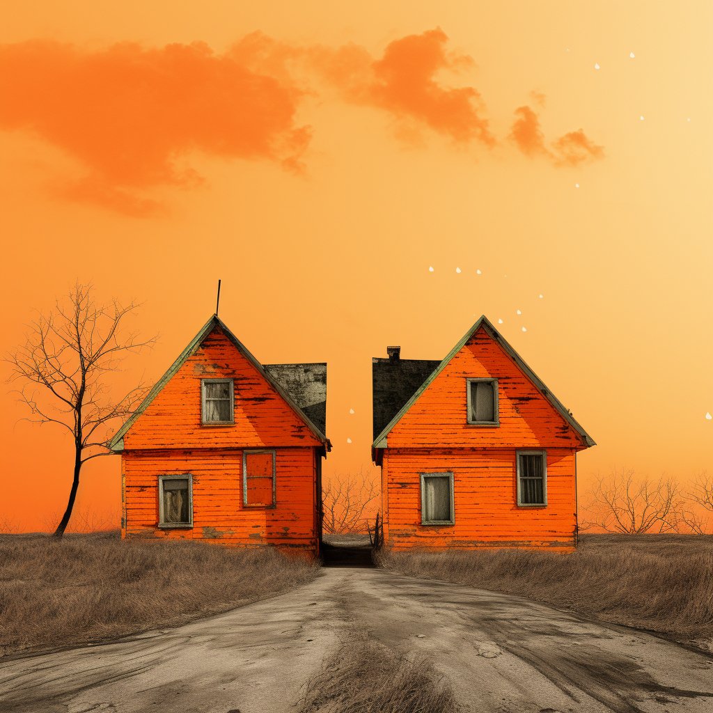 zwei orangefarbene Häuser 1