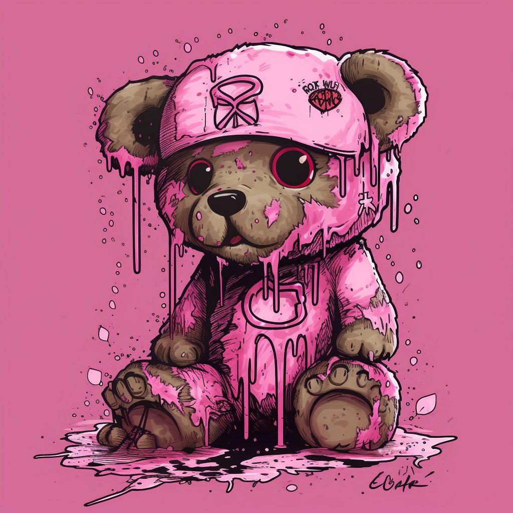 rosafarbener Unisex-Teddy mit einem braunen Tattoo auf der Stirn 4