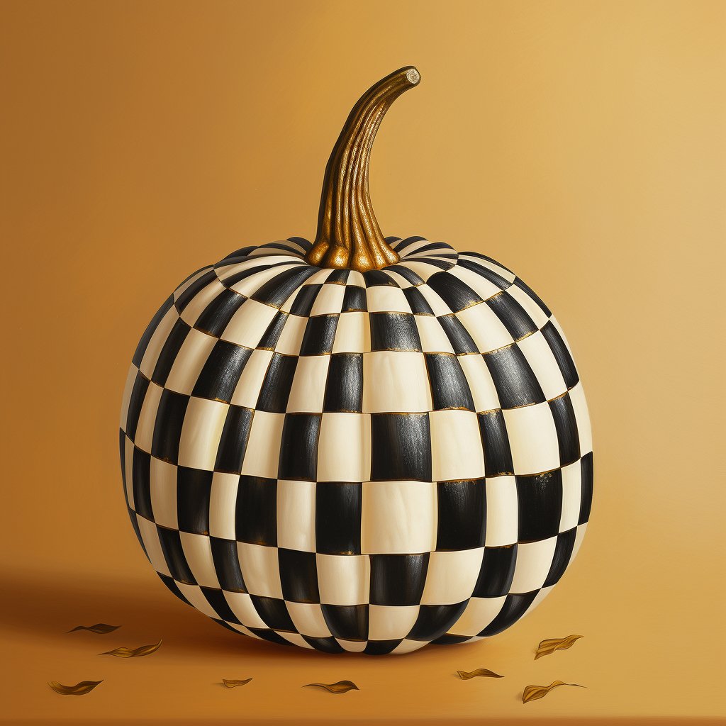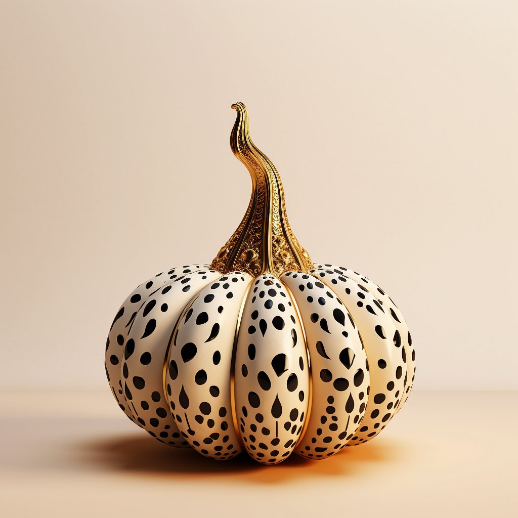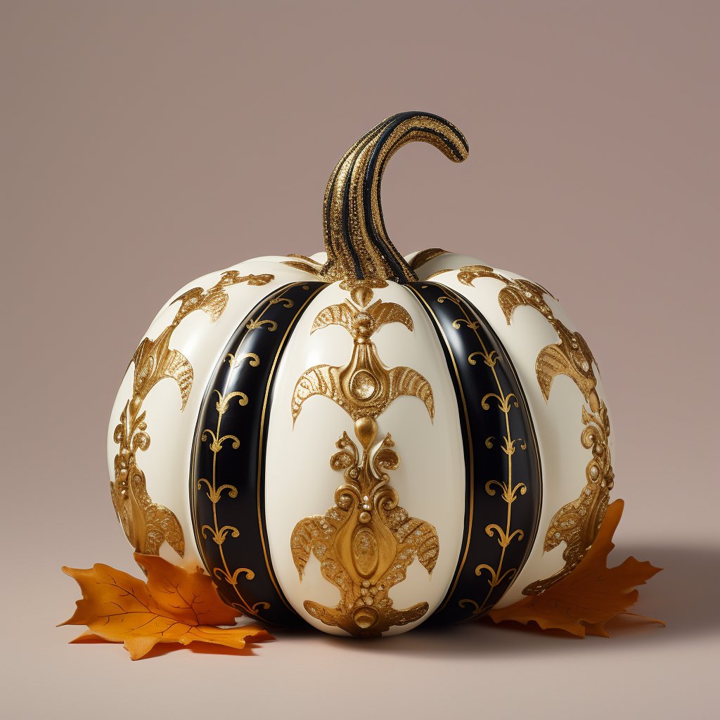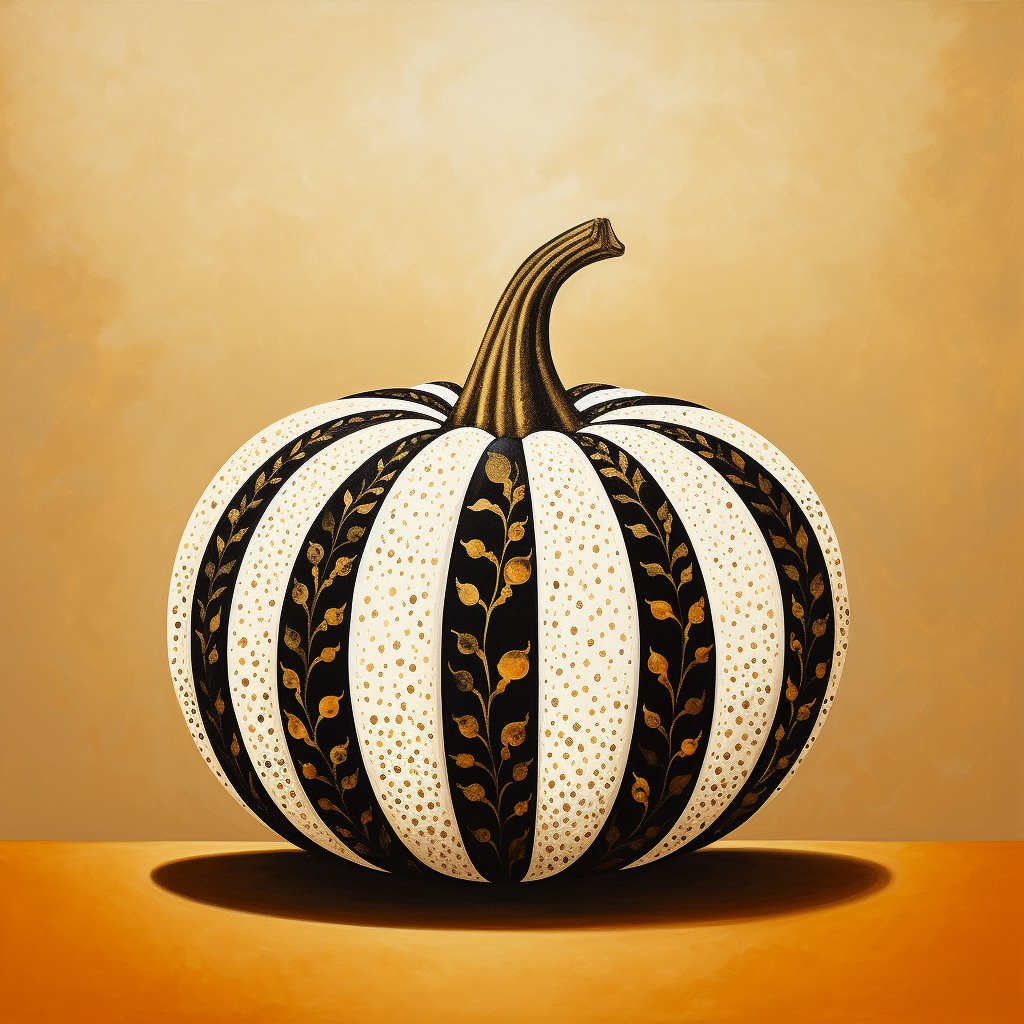 Gold weiß und schwarz, Kürbis auf beigem Hintergrund 4