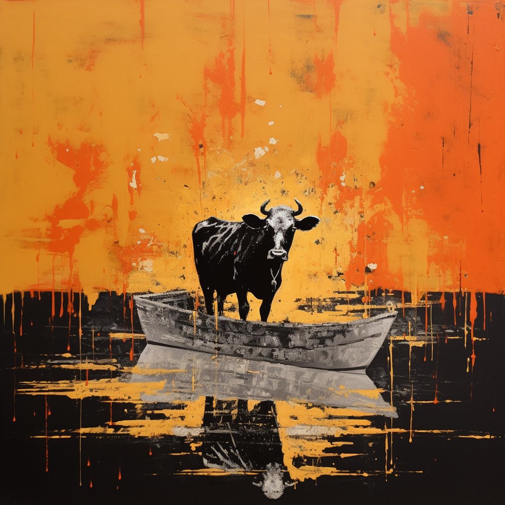 Gold weiß und schwarz, Kürbis auf beigem Hintergrund 1