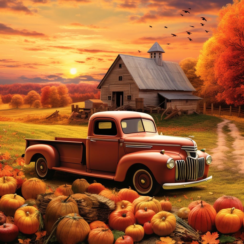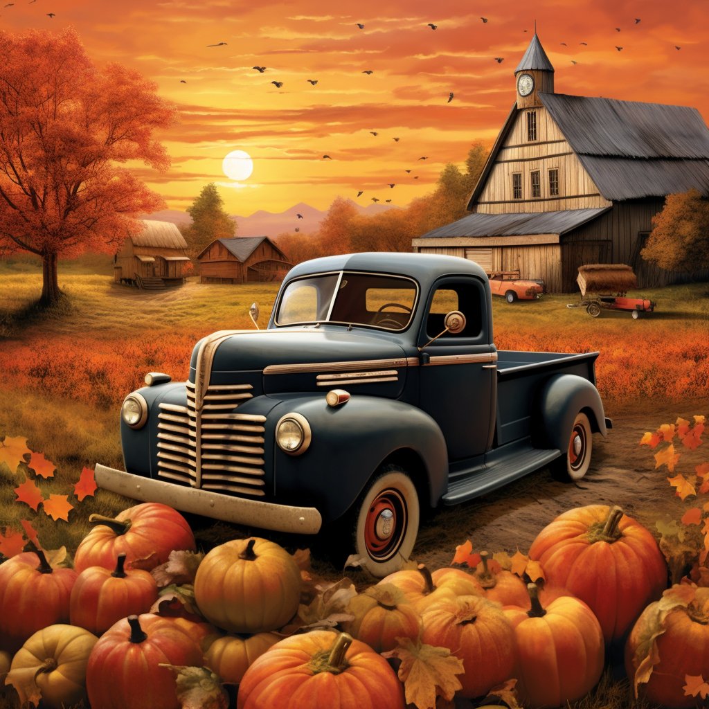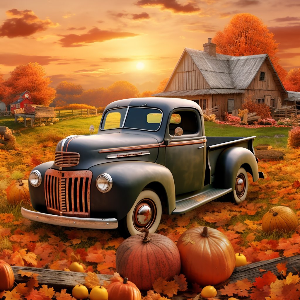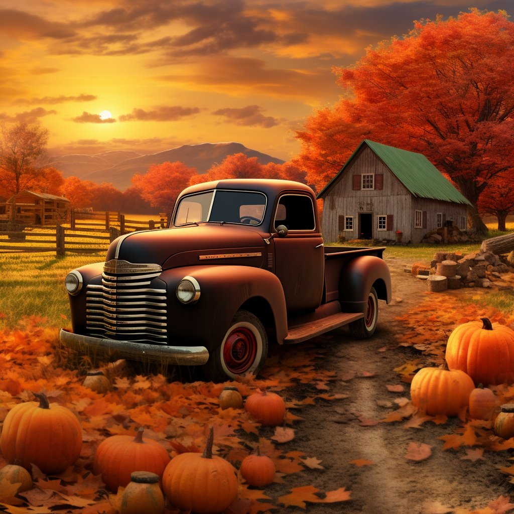 ein alter Pickup an einem herbstlichen Abend bei Sonnenuntergang 3